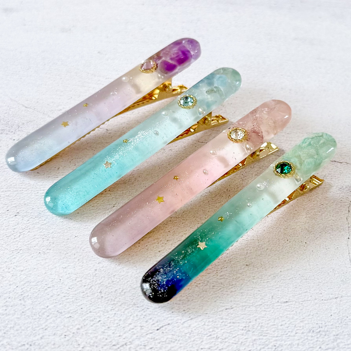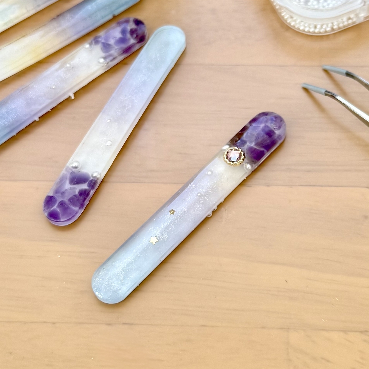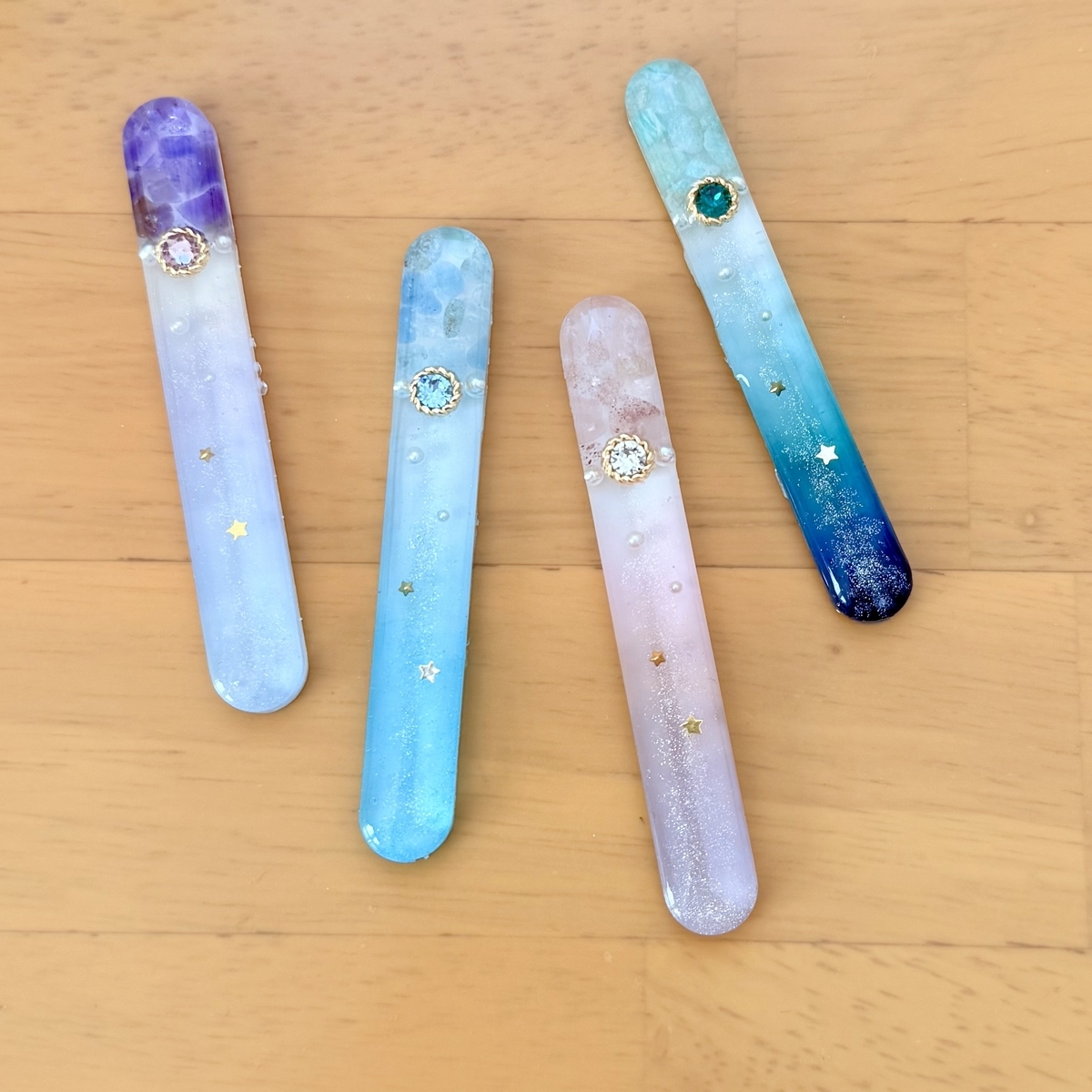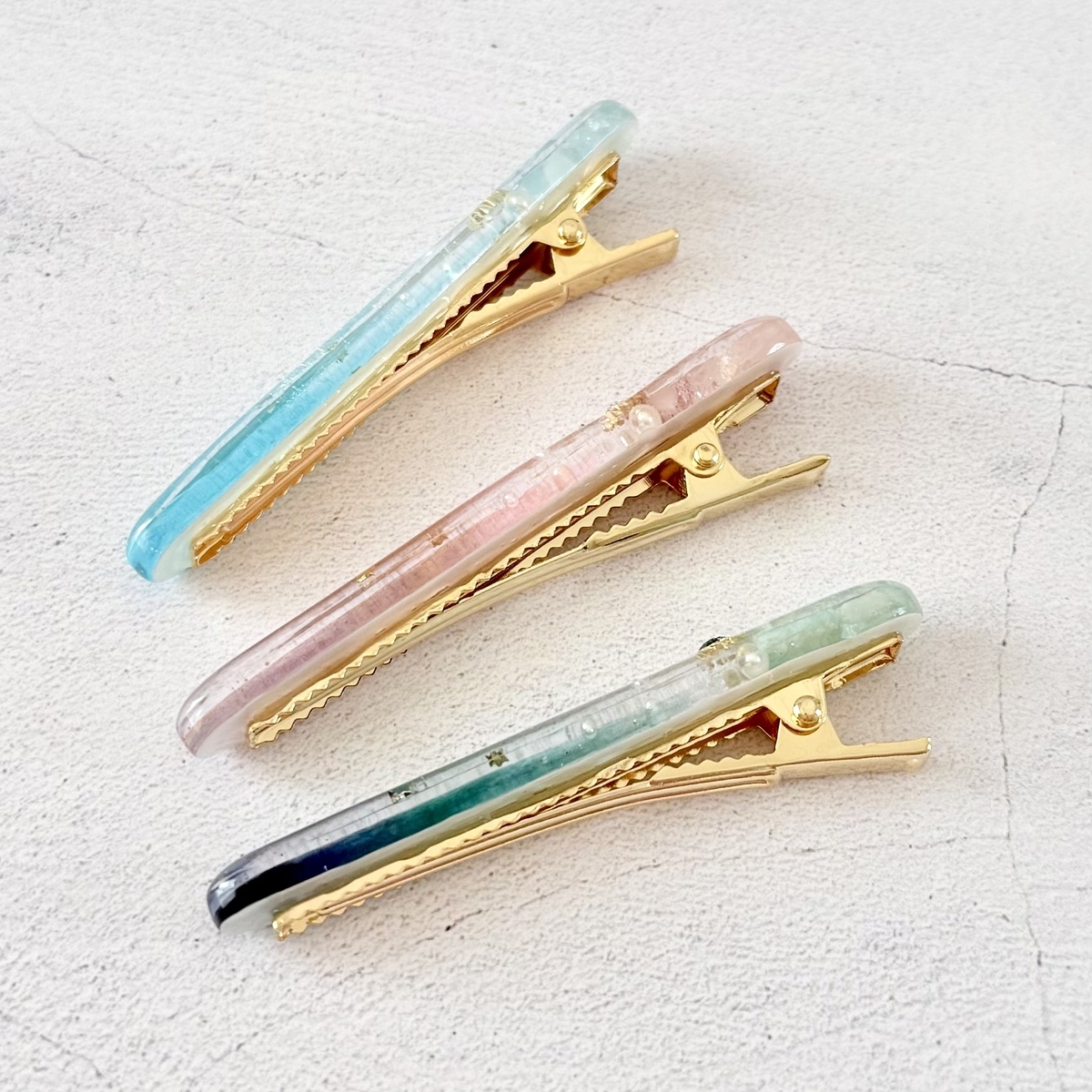 春の誕生石カラーのヘアクリップが出来上がりました。
