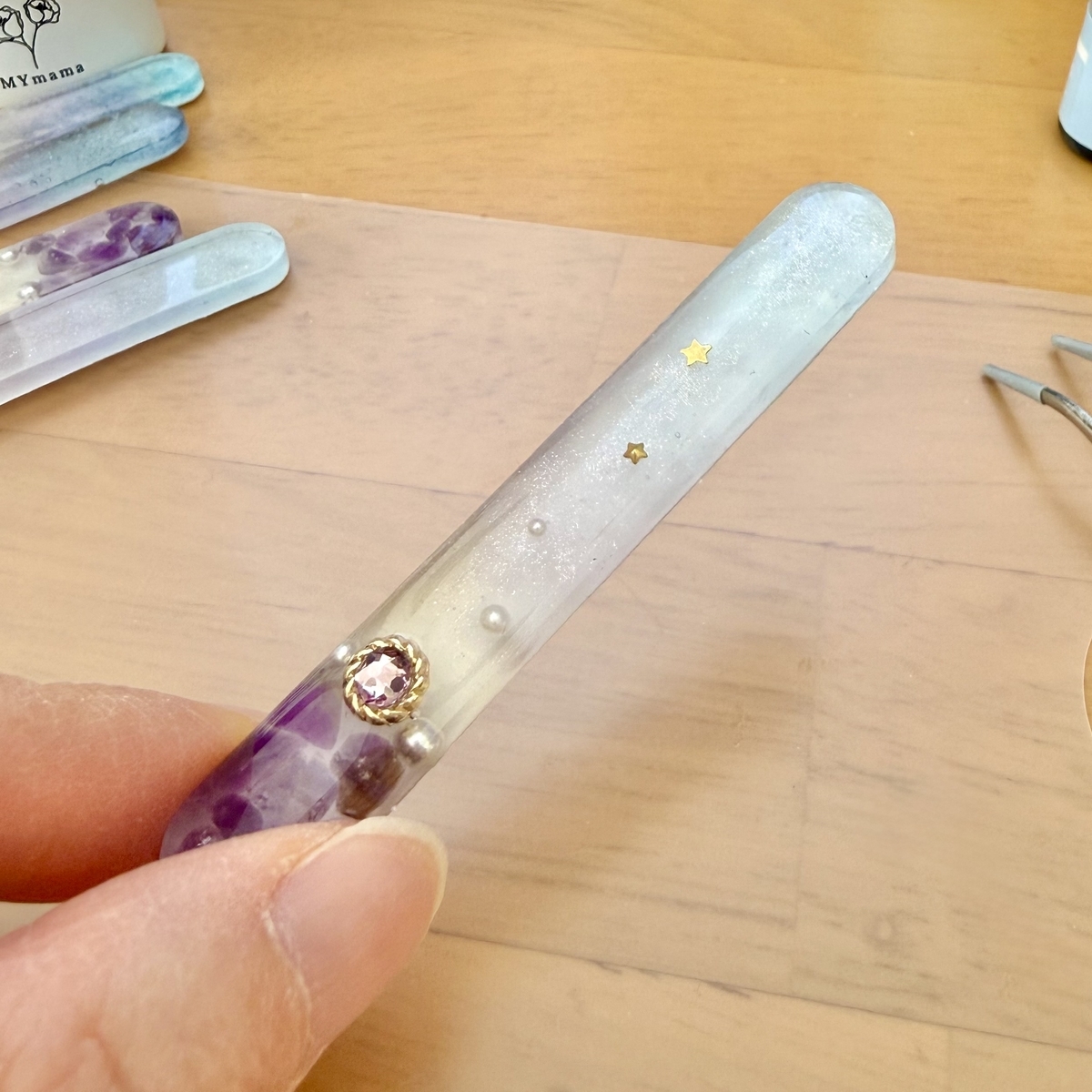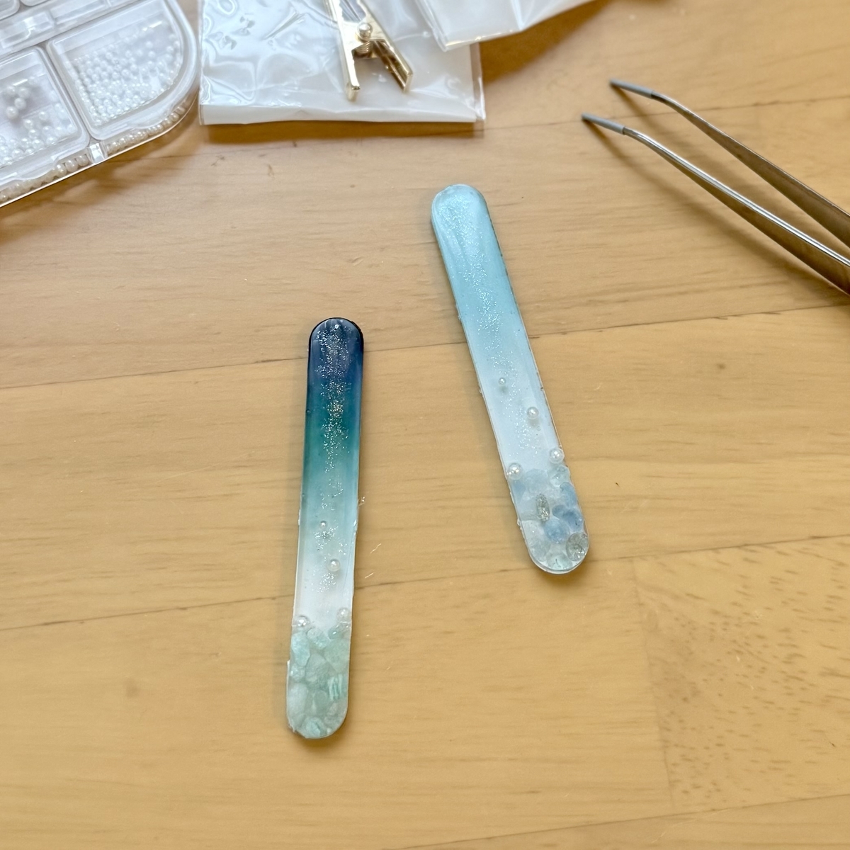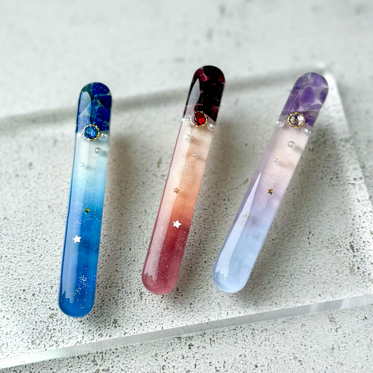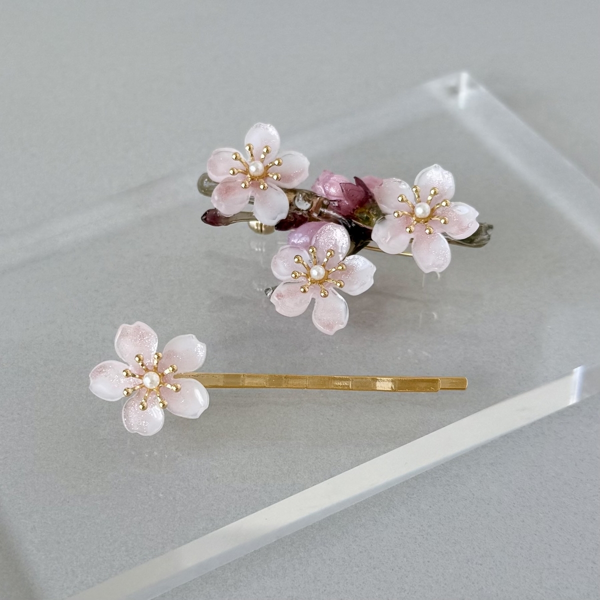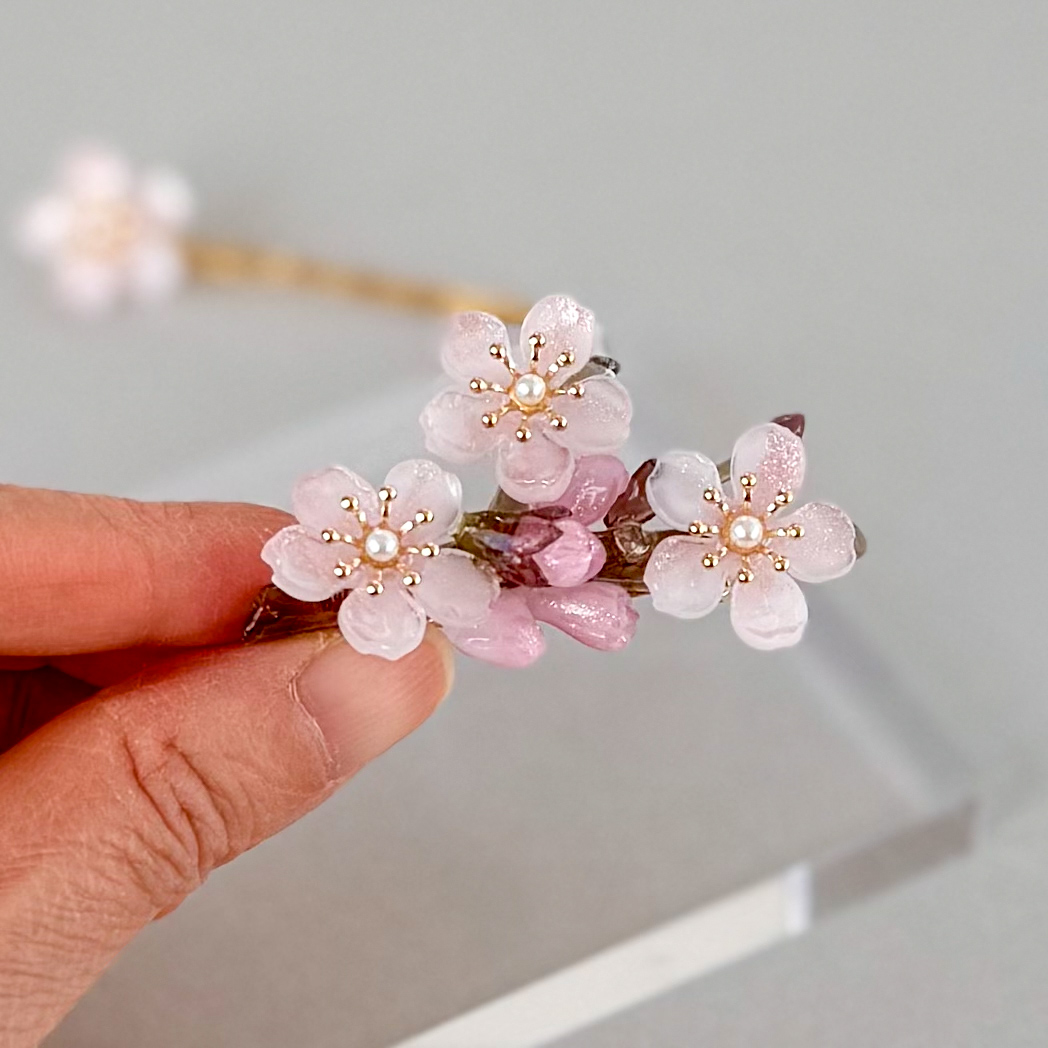 春の誕生石カラーのヘアクリップが出来上がりました。