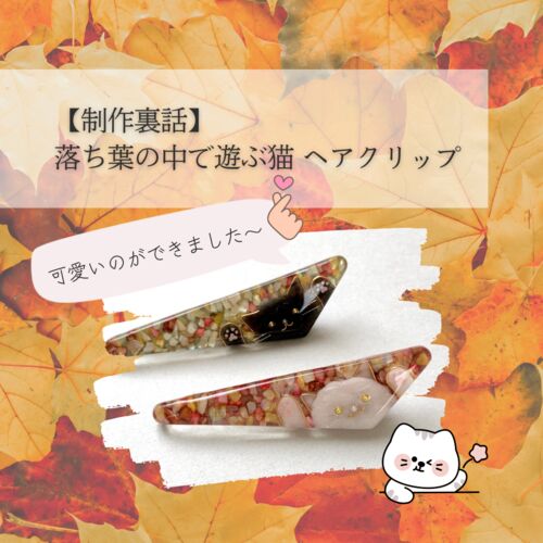 みなさん、こんにちは! 今日は、販売中の新作「落ち葉の中で遊ぶ猫 ヘアクリップ」の制作の裏側についてお話ししたいと思います。 秋からインスピレーションを受けて この作品のアイデアは、秋の穏やかな雰囲気と紅葉の美しさ、そして何より私の大好きな猫…