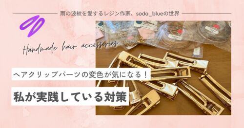 こんにちは! 最近、ハンドメイドで作っているヘアクリップやアクセサリーのパーツが変色してしまうことが気になり始めました。ハンドメイドをしている方ならわかると思いますが、パーツの変色が意外と早いものってありますよね?皆さんはどんな対策をしてい…