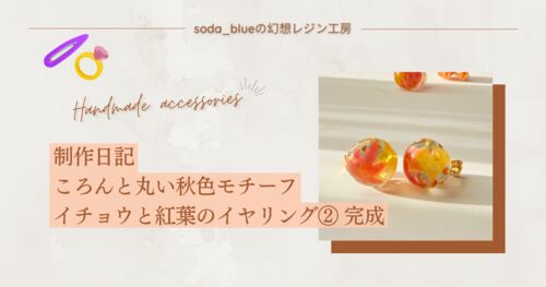 こんにちは、soda blueです。 前回のブログに続いて、イチョウと紅葉のイヤリングづくりの仕上げ編です。 モチーフとイヤリング金具を接着剤で固定し、しっかりと乾かします。 今回は耳にやさしいクリップタイプの金具を使用しました。 接着剤が完全に乾いた…