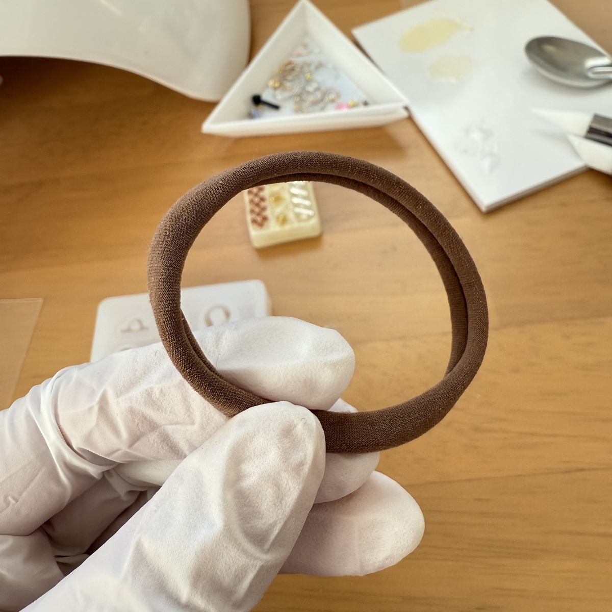 今回のヘアゴムは、シンプルなコーディネートにもアクセントとして使えるデザインに仕上がったので、実際に身につけるのが楽しみです。普段使いにも良さそう!