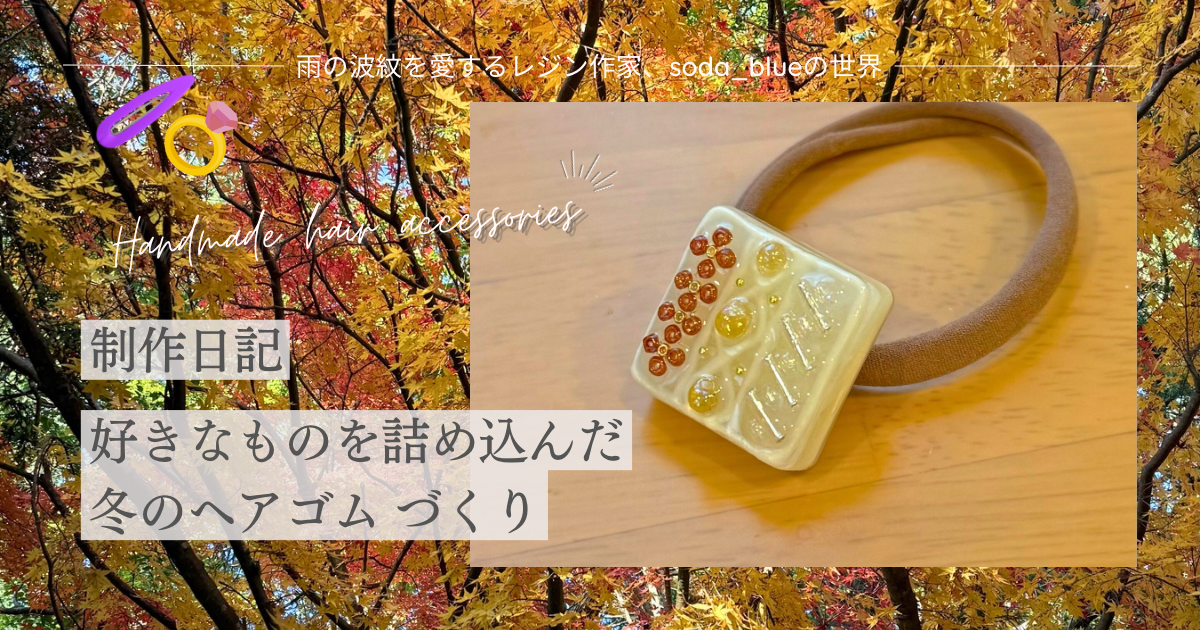 ヘアゴムを付けるパーツをレジン液で作って付けました。
