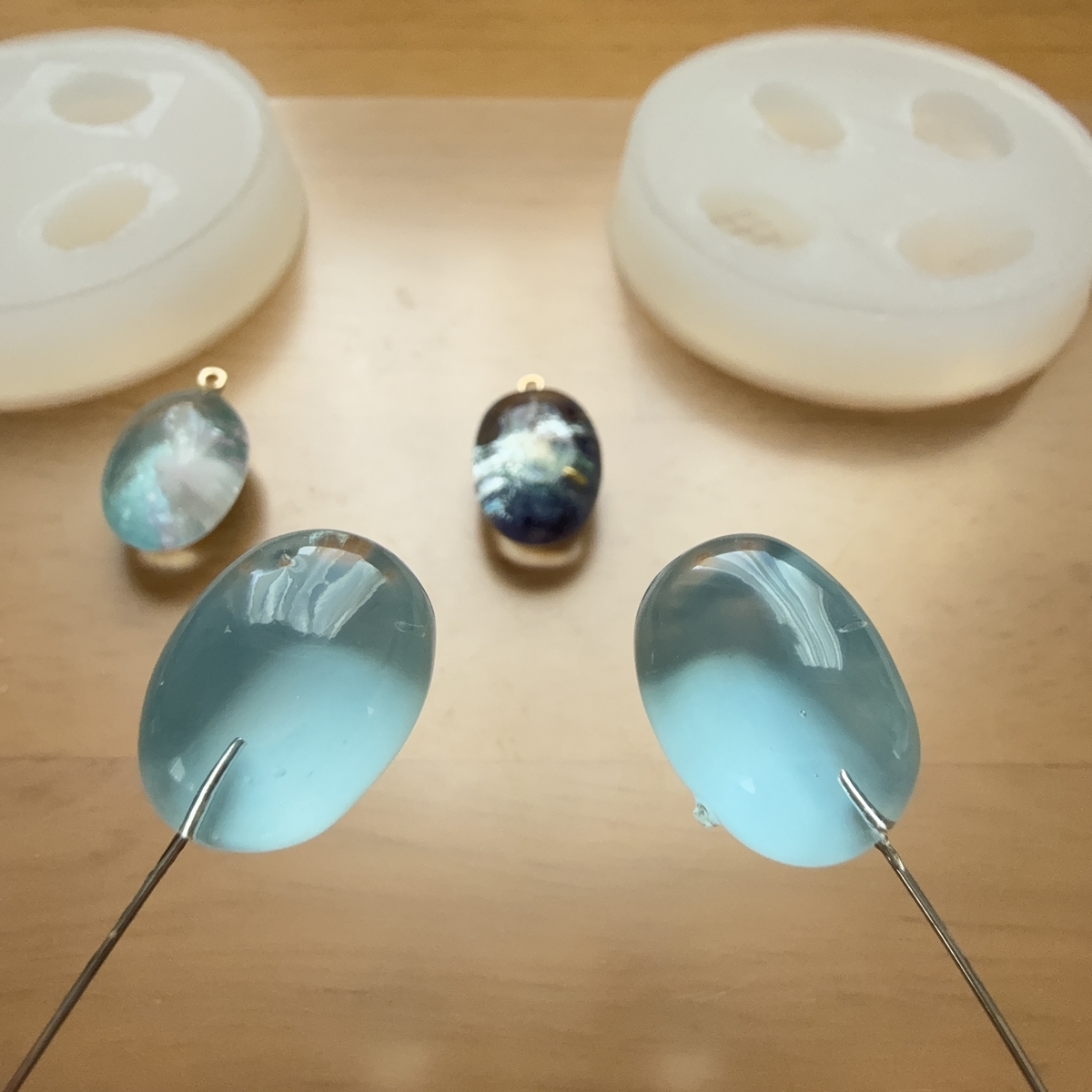 この後、もう一度同じ楕円形のモールドにレジン液を流して確認してみました。