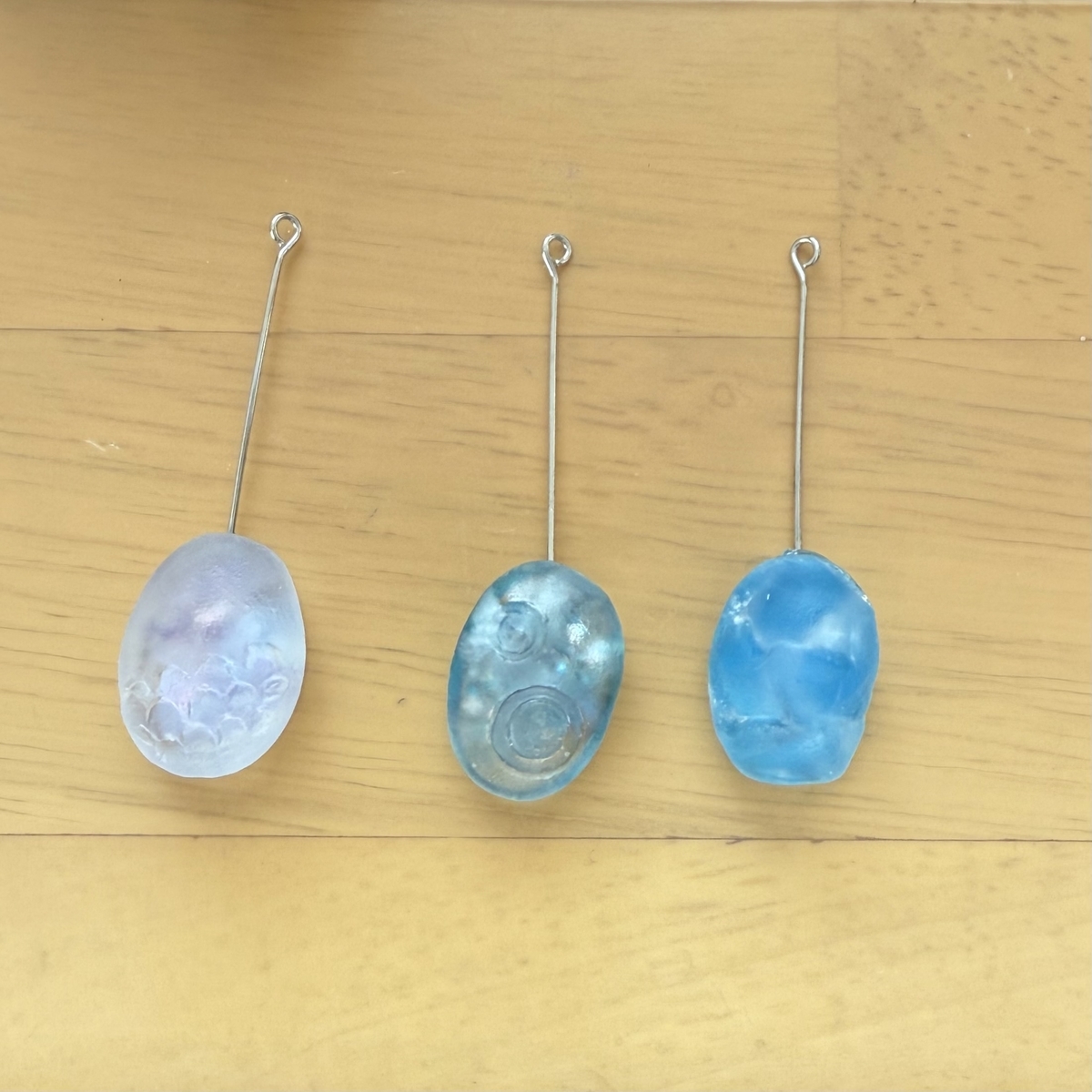 桜モチーフで曇りが出てしまったので、 「石粉粘土+サーフェイサー」で作った原型のモールド を使い、別の3つの形でも試作しました。